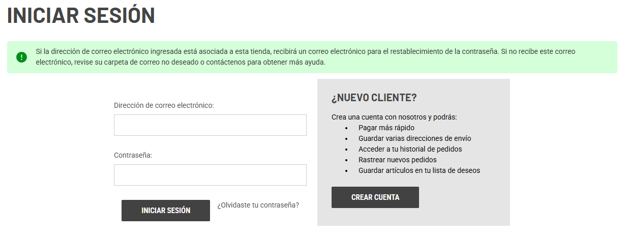 Aparecerá un mensaje donde indica que se envió un correo electrónico para que puedas establecer tu nueva contraseña